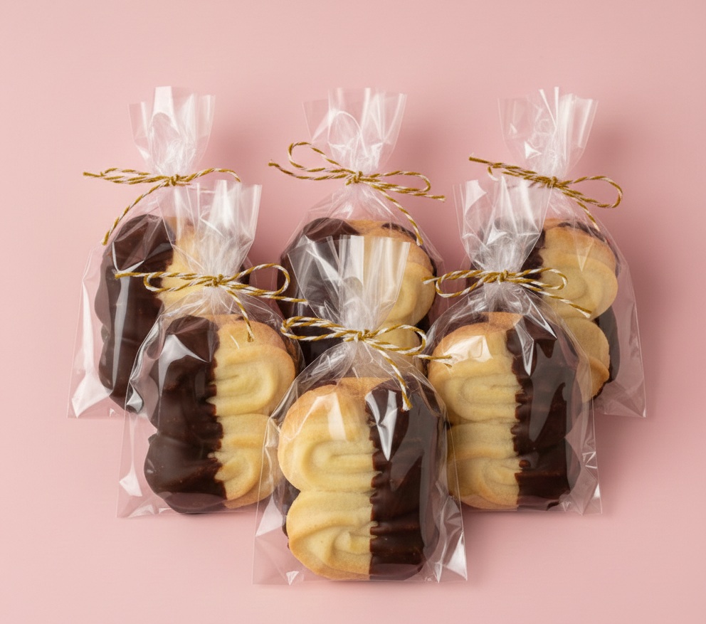 Le biscuit spritz au chocolat est un grand classique de la biscuiterie, à la fois fondant et délicatement croustillant. Préparé avec un beurre de qualité et du chocolat riche en cacao, il se distingue par sa texture sablée et son goût intense. Chaque biscuit offre une bouchée gourmande, équilibrée entre douceur et notes chocolatées, idéale pour accompagner une boisson chaude ou pour une pause sucrée à tout moment de la journée.