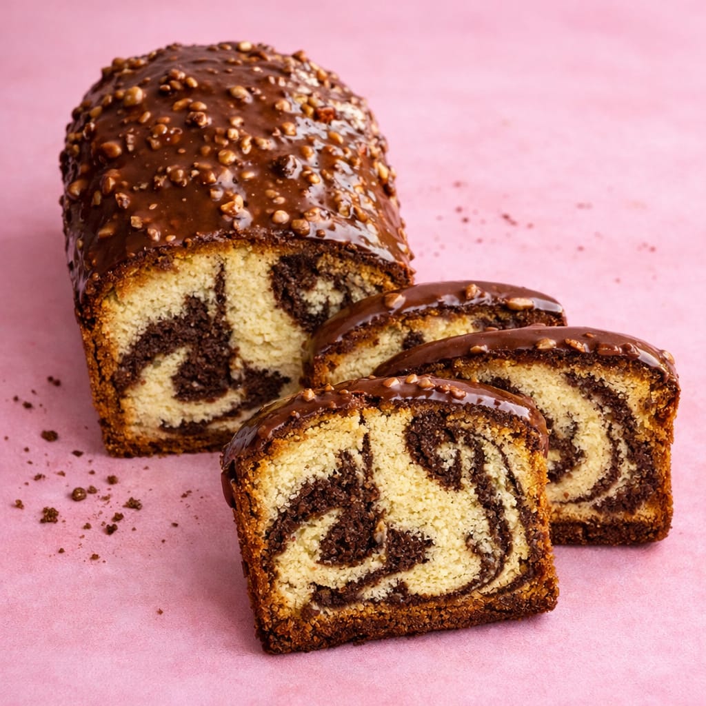 Un délicieux cake moelleux alliant la richesse du chocolat et la douceur de la vanille, surmonté d’un glaçage rocher croquant aux noisettes. Chaque bouchée offre un équilibre parfait entre gourmandise et texture fondante.